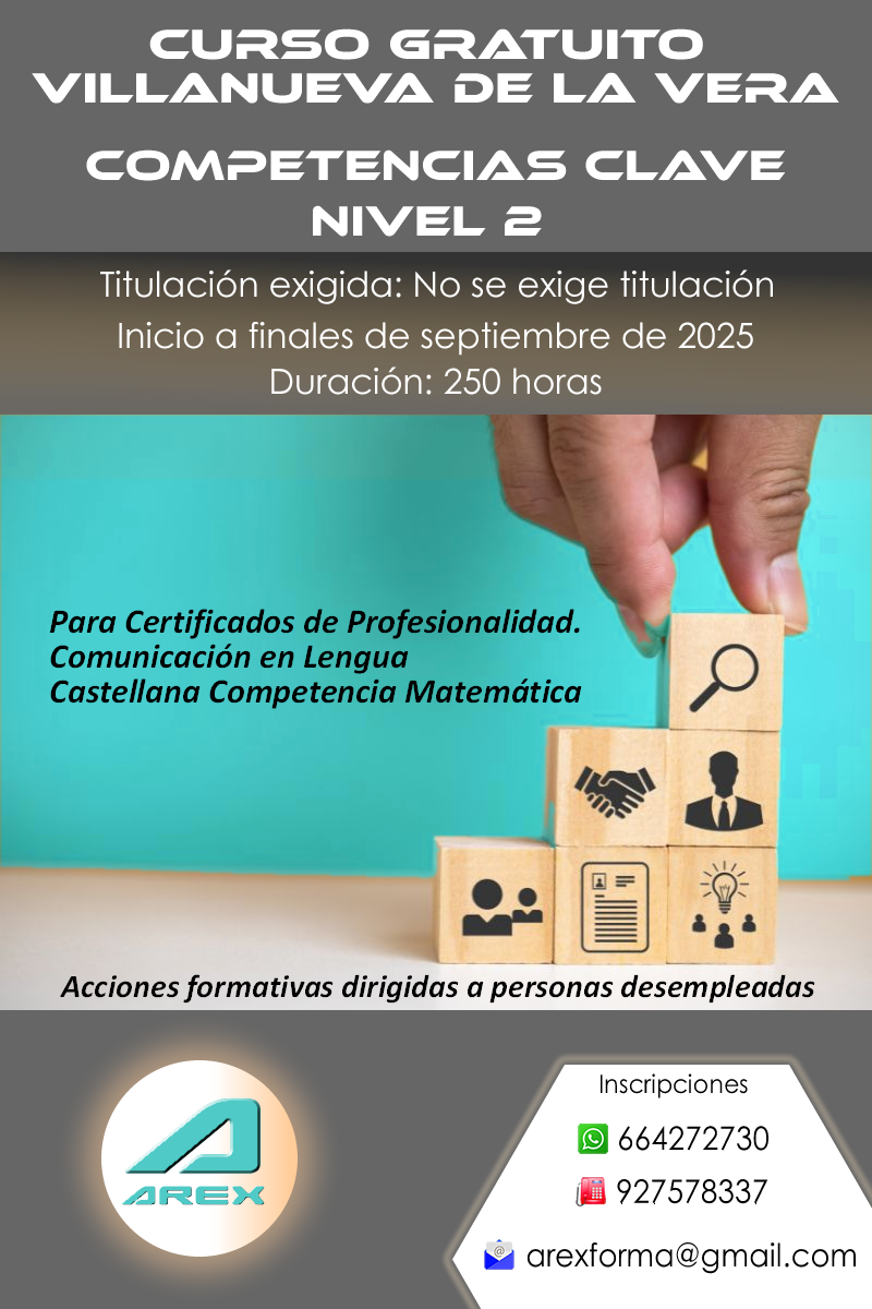 CURSO GRATUITO EN VILLANUEVA DE LA VERA. COMPETENCIAS CLAVE NIVEL 2