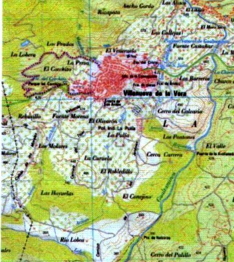 Tomaremos la pista a la izquierda rodeados, ahora, por encinas y retamas y con una impresionante panorámica de la sierra de Gredos, hasta llegar al cruce con el camino de los Jardines, donde giraremos a la izquierda de nuevo y comenzaremos el ascenso a Villanueva. Sin desviarnos y siguiendo siempre la pista principal, subiremos pasando junto a unas majadas de cabras y a la Cerca Carrera, antes de llegar al Polígono Industrial de la Pulía.A partir de aquí el camino está asfaltado y tendremos que seguir subiendo siempre de frente hasta aparecer en Villanueva por la C/ San Justo, muy próxima a la Ermita de Cristo, donde finaliza la ruta.
